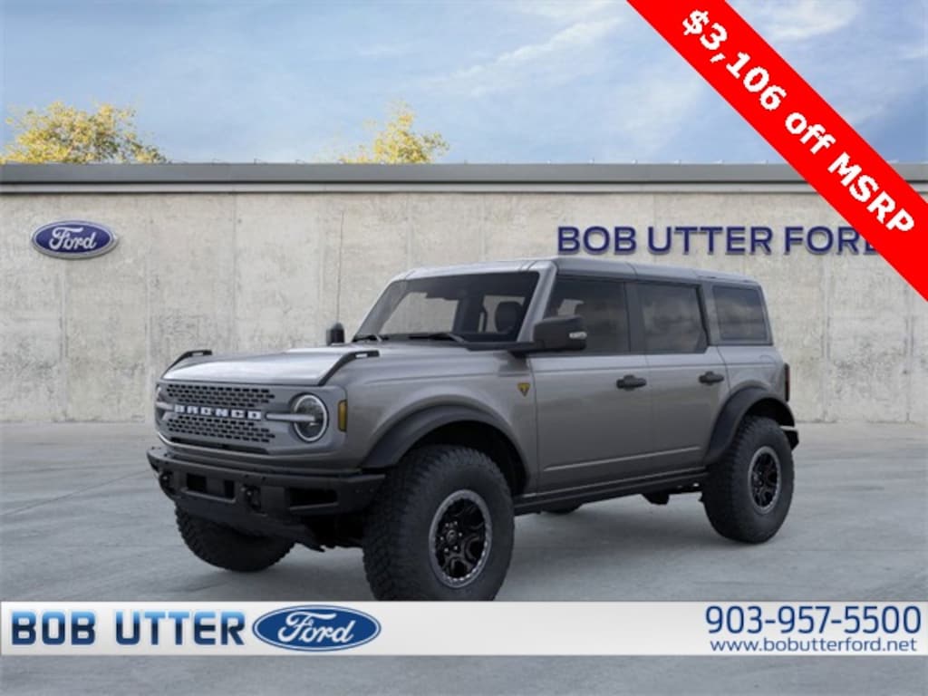 ''Here at Bob Utter Ford, we want you to feel like you are a part of our family. Our Internet Sales Team makes purchasing a vehicle quick and easy! Let us help you with your new Ford today! You can view all of our inventory at www.bobutterford.com. Contact the Internet Sales Dept. at 903-957-5500 or sales@bobutterford.com. All vehicles may be equipped with dealer added accessories. Price of accessories may not be displayed. Please verify added accessories and price with dealer. 2025 Ford Bronco Badlands 2.7L EcoBoost V6 4WD Carbonized Gray Metallic Price includes: $2000 - Retail Bonus Cash. Exp. 11/19/2025