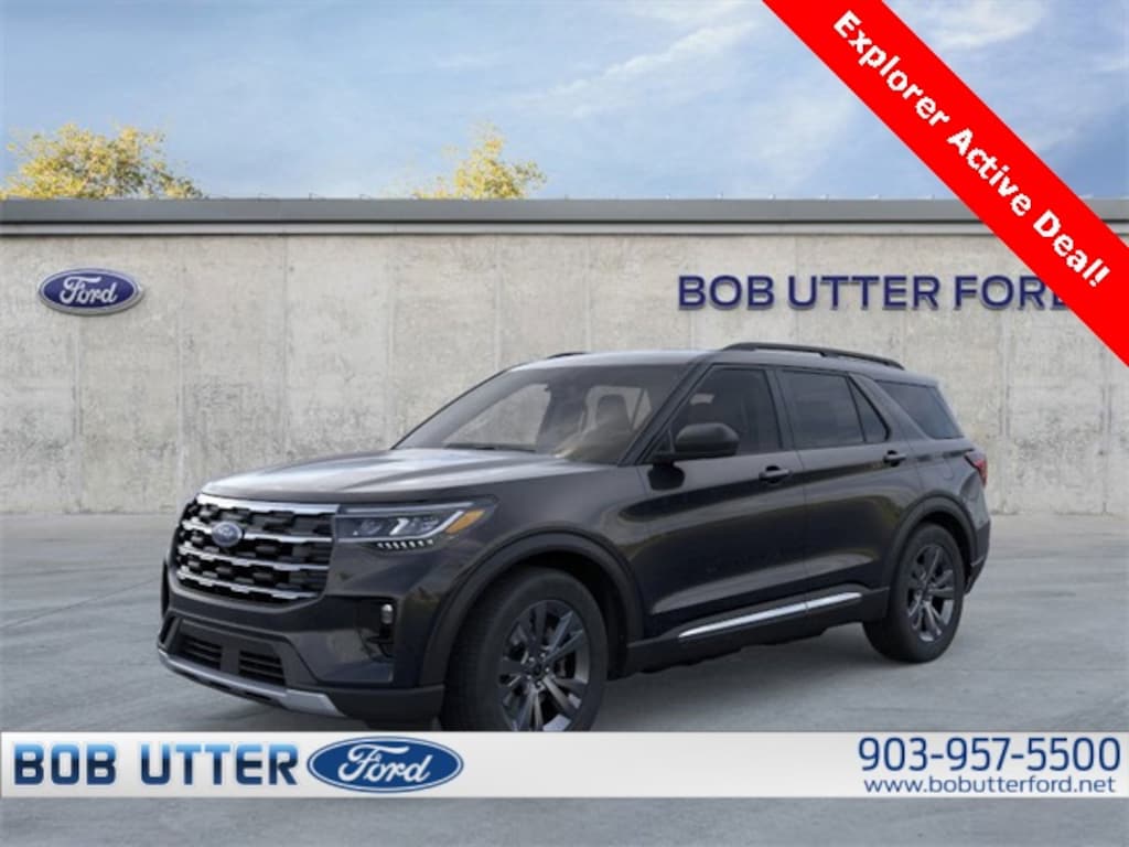 ''Here at Bob Utter Ford, we want you to feel like you are a part of our family. Our Internet Sales Team makes purchasing a vehicle quick and easy! Let us help you with your new Ford today! You can view all of our inventory at www.bobutterford.com. Contact the Internet Sales Dept. at 903-957-5500 or sales@bobutterford.com. All vehicles may be equipped with dealer added accessories. Price of accessories may not be displayed. Please verify added accessories and price with dealer. 2025 Ford Explorer Active 2.3L EcoBoost I-4 4WD Agate Black Metallic 20/27 City/Highway MPG Price includes: $1500 - Bonus Customer Cash. Exp. 01/05/2026