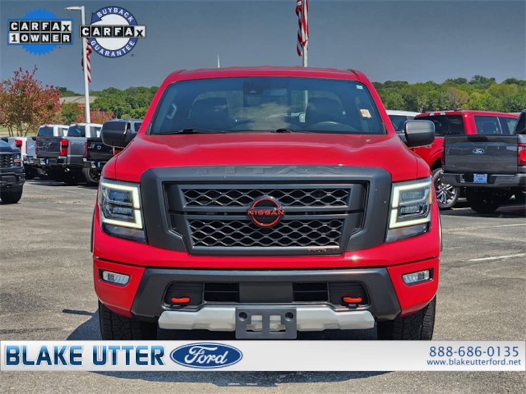View all our inventory at www.blakeutterford.com. Follow us on Facebook! Call Terri Irby Internet Sales 888-686-0135 or 903-465-5671 ext. 1048 today! 2023 Nissan Titan PRO-4X